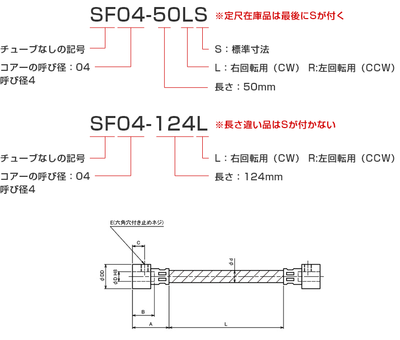 - 2)長さ(L寸法)、軸端寸法が標準外のものも製作可能です。