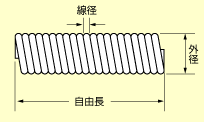 | 新品番 | 旧品番 | 外径 | 自由長 | 線径 | 最大荷重 (N) | 最大 たわみ | バネ定数 (N/mm) | 初張力 (N) |